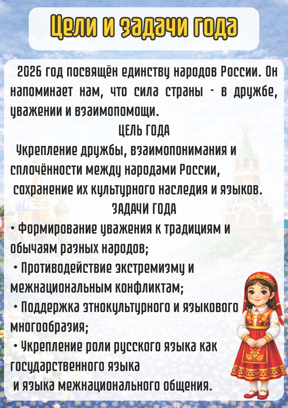 Объявление 2026 года Годом единства народов России направлено на достижение национального единства, мира и согласия между всеми народами страны.